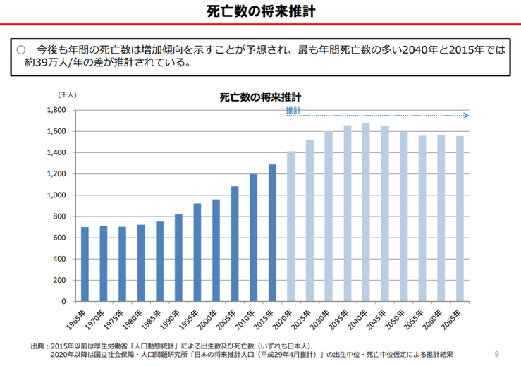 2040年問題というのはご存じだと思います。2040年に年間死亡者数がピークに達すると予測されていることに関連したものだと理解しています。